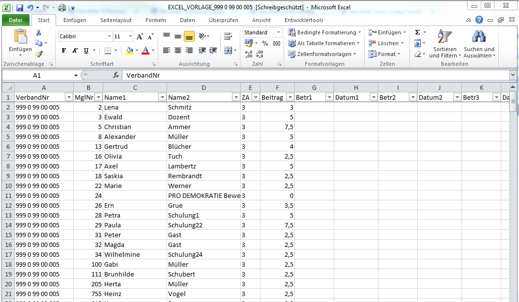 • Die Formatierungen der Vorlage sollten nicht durch eigene Formatierungen verändert werden. Änderungen können zu Fehlern beim Import führen.